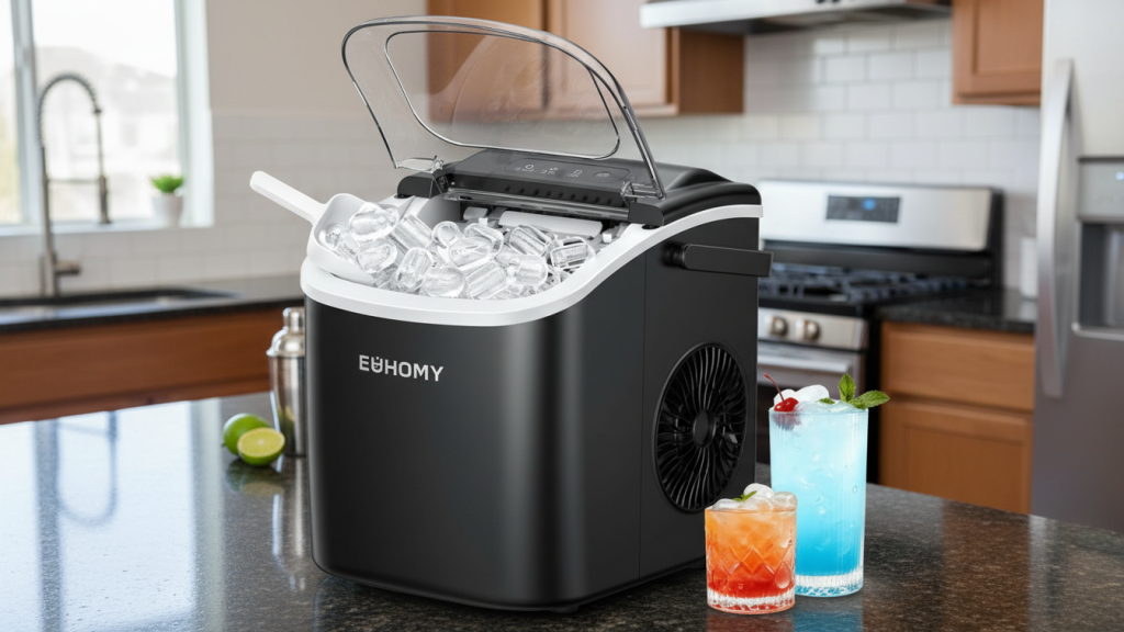 Best overall for most homes (fast ice + low mess): EUHOMY Countertop Ice Maker (fast bullet ice category)