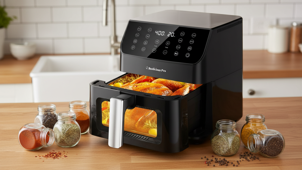 2) Beelicious 5.8QT Large Air Fryer (12-in-1) with View Window — Best for Visual Cooking + Reminders